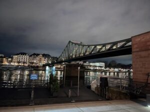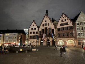 Flix busで5時間ほど移動し、フランクフルトについたのは17:00頃で、ホテルにチェックインしてから軽く観光に行きました。既に外は真っ暗でしたが、フランクフルトの夜景は、その日本では見られない建築様式からとても美しく見えました。