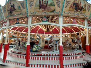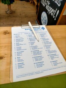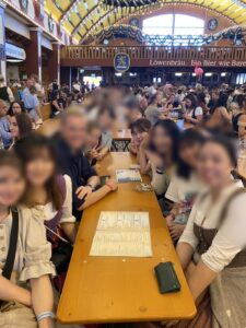 私は4ユーロを払ってOide Wisenという区間に入りました。そこは、昔ながらの木でできた乗り物が多く、値段もとても安いです。子供連れや家族で来ている人が多くてのんびりした雰囲気でした。また、ミュージアムテントに入った時には、バイエルン方言のクイズあてゲームがあってみんな大苦戦していました。バイエルンに住んでいても都会の人や、若い人はあまり知らないみたいです。しかも問題数がとても多く、さらに紙ごとに問題が違うらしくて、バイエルン特有な言葉の多さに驚きました。私も見てみましたが、本当に全くわかりませんでした。ミュンヘン大学ではバイエルン方言の授業もあるらしいので少しとってみたいです。オクトーバーフェストのビールは通常の2倍か3倍の値段がするので何杯も飲めないのですが、その分度数が高く設定されているのですぐに酔いが回ってきます。隣の男の人に絡まれることも多かったので、本当に少人数で行くのは向かないと思います。
