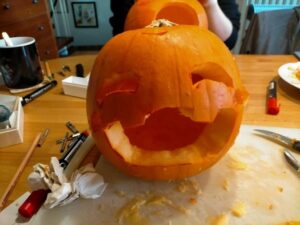 私は人生で初めてかぼちゃのランタンづくりをして、生のかぼちゃを彫る経験をしました。