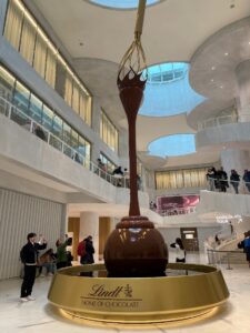 中に入ると巨大な泡だて器からチョコレートが流れ落ちるオブジェに迎えられます。