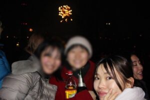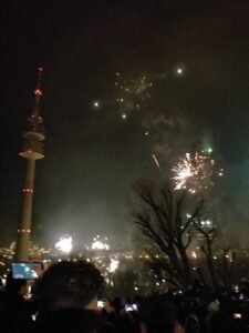 最後に、12月31日の大晦日は自宅でパーティーをして、友人たちと一緒に花火を見に行きました。花火を見るといっても一般人が日本では考えられない規模で盛大に楽しんでいるのを、丘から見るというものです。ドイツでは、クリスマスは家族、お正月は友人とパーティーが普通らしいので、私もそれにのっとって友達と楽しく過ごせました。