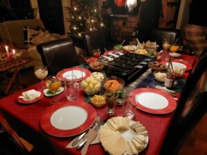 また、Wichtelというサンタに似た小人もいます。この小人は冬になったら現われるらしく、日本の座敷童みたいな存在らしいです。日本にはない伝統的なクリスマス文化がたくさんあって驚きました。24日にはラクレットを食べて、25日のお昼にはローストビーフみたいなのを食べました。