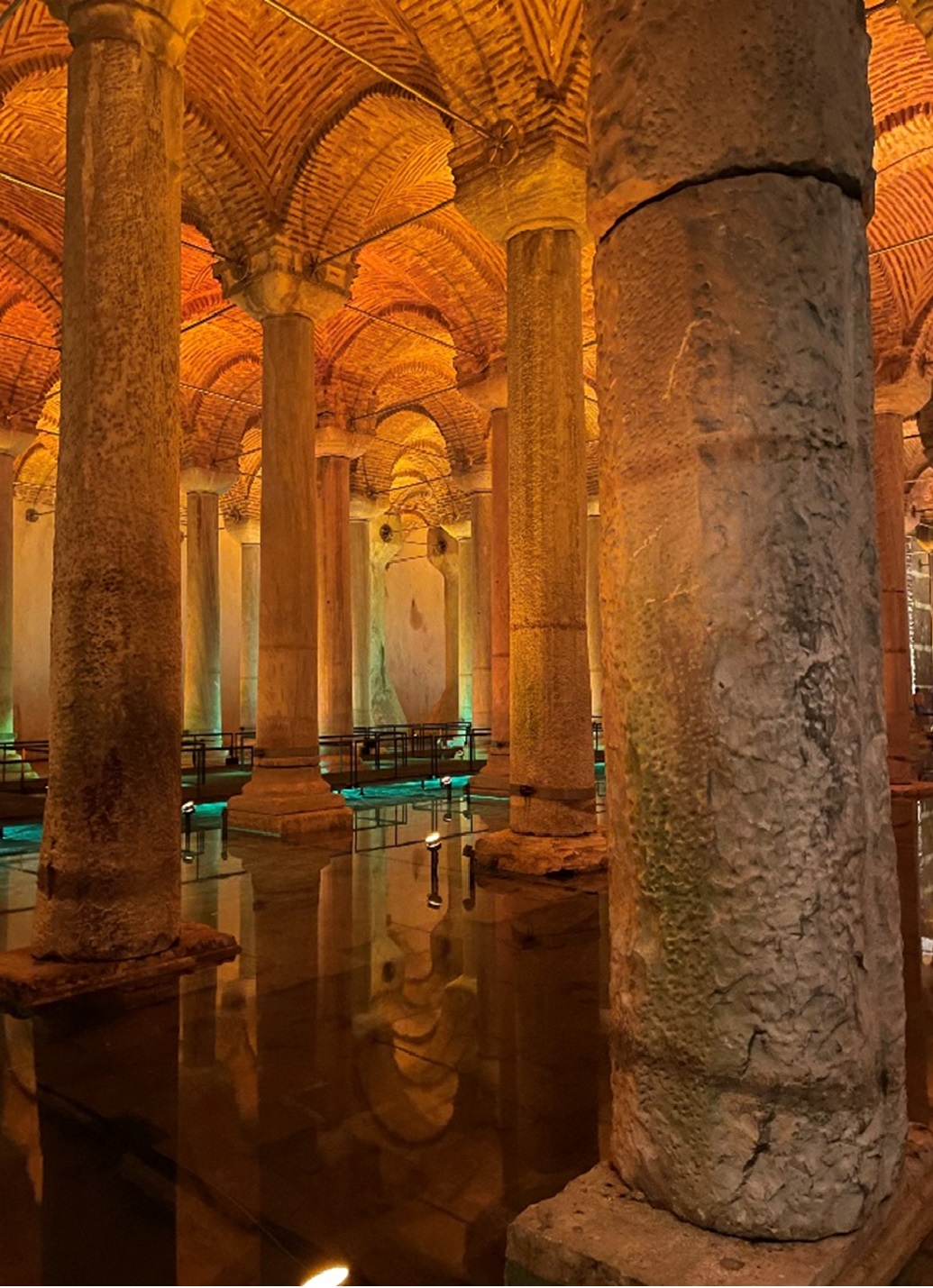 その後はモスクのすぐ近くにある地下宮殿に向かいました。この地下宮殿はもともと貯水池として利用されていた施設だったのですが、その美しさからこのような名前が付いたそうです。中は貯水池としてこんなに美しくする必要があったのかと思ってしまうほど、美しく豪華でした。