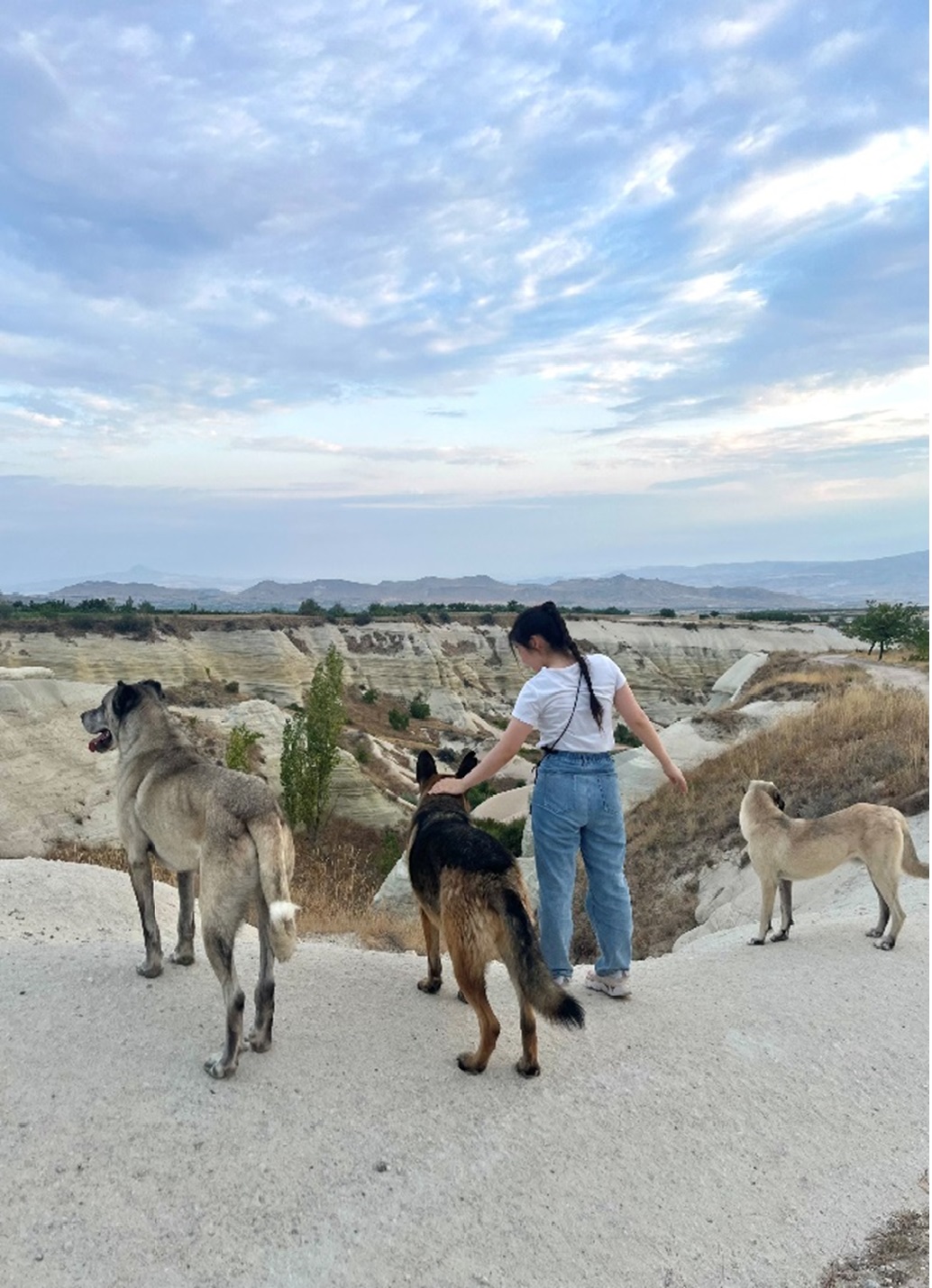 そのため、私たちはシェパ(勝手に名付けた愛称)と一緒に行動するにはどうすればよいのかを一番に考え、どんなに遠くても徒歩で行って、シェパが暑がっていたらカフェに入って休憩し、日陰を見つければ休憩するという日程を過ごしました。あんなに暑い中徒歩で観光する人はいないらしく、道中はほとんど人と出会いませんでした。シェパとこんなに仲良くなったため最後のお別れはさみしすぎて、また会いに来ようと決心しました。次来るときは一泊ではなくもっと長く滞在したいです(気球のリベンジも含めて)。