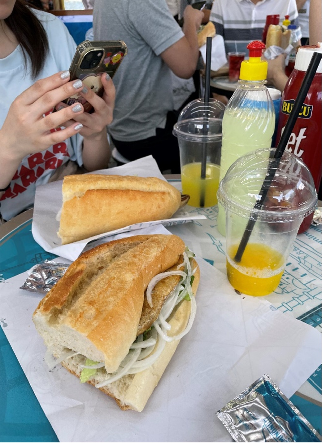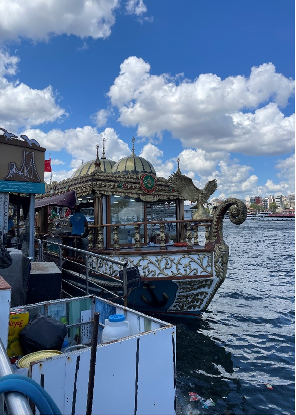 何も買うことなく次はガラタ橋に向かいました。ガラタ橋は2階建ての大きな橋で下はお店がにぎわう商店街のようになっていて、上が道路になっています。ガラタ橋付近では鯖サンドが有名なので食べたのですが、とても大きい鯖が一匹分入っていました。久しぶりの焼き魚に感動し、私の舌は完全に日本人だなと思いました。ただ、鯖を焼いているキッチンの部分が船になっており、ありえないほどに波に揺られていたので心配になりました。