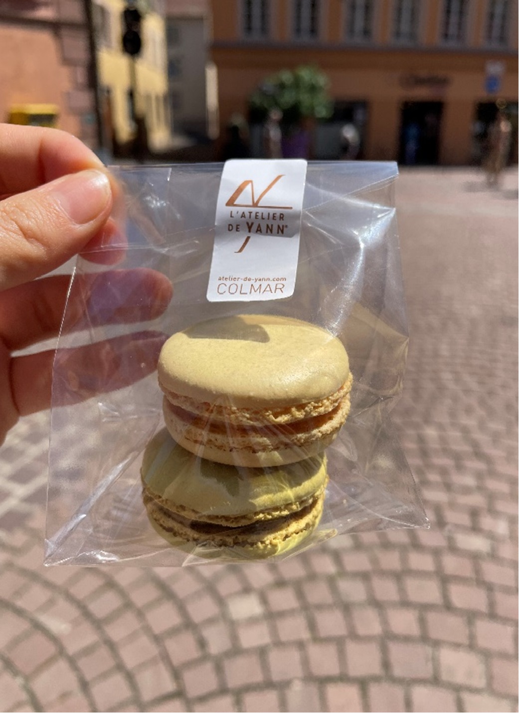 フランスといえばマカロンという印象が自分の中で強く、パリで食べれなかったので、コルマールで試してみることにしました。お店に入ってマカロンを眺めていると店員さんがフランス語で話しかけてきました。私が知っているフランス語はボンジュールとメルシーのみだったので、挨拶したあとに英語で注文したのですが、店員さんは私の英語を理解したうえでフランス語で返答してきました。