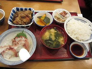 肉じゃが、納豆、たこのお刺身、かぼちゃの煮物にお味噌汁!