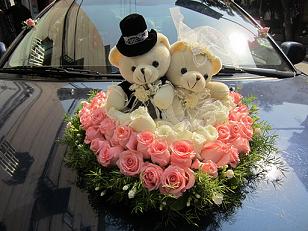 中国ではこのように飾り付けをした車で式の当日に花嫁を迎えに行くのだそうです。