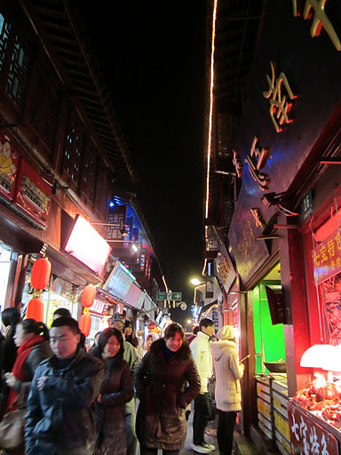 夜に行ったのでイルミネーションがとても綺麗でした。ここは食べ物のお店がほとんどなので、食べ歩きをしながら街を見て回りました。ゆでたお団子や、羊の肉の串焼きや小籠包などどれもおいしかったです。綺麗なポストカードをたくさん売っているカフェもあったので、そこで何枚かポストカードを買って帰りました。