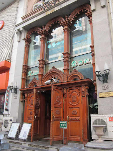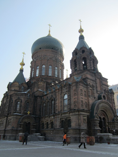 ハルビンはロシア色の強い土地でもあり、ロシア風の建造物やロシア料理店も多く、お土産屋にもロシアの商品が並びます。