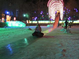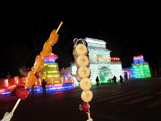 ホテル近くの兆麟公園では学割がきき、200元のところ80元で入ることができました。ここは割と小さめの氷の像や建物が多かったのですが、その中にタイヤで滑る氷の滑り台があり、これがとてもおもしろかったです!