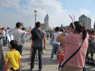 外灘もこの日は人でいっぱいでした。国旗と同じようになぜかうさぎの耳のカチューシャを売っている人もいて、実際につけて歩いている人も見かけました。ディズニーランドみたいですね。