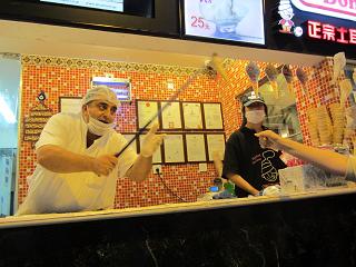 豫園の周りには色々なお店が並んでおり、その中の一つにトルコアイスのお店があるのですが、そこのトルコ人の店員さんがお客さんに棒を使ってアイスを渡す振りをしてから、棒をくるっと回してフェイントをかける仕草が面白く、そのお店はたくさんの人だかりができていました。
