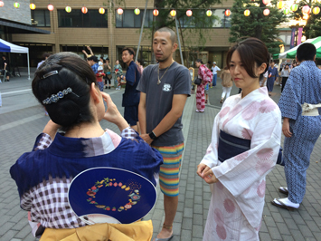 第2回の企画運営を支えてくれたのは、NCCの中でも前年盆踊りを経験した女性の学生たちでした。第1回は彼女たちがとても頑張って着付けなどの仕組みを考えたので、第2回は私が言わないでも積極的に運営や後輩指導を担っていました。当時は先輩は単位にならなかったのですが、一度経験した成功体験を後輩にも伝えたいというのがあり、当日も手伝ってくれました。