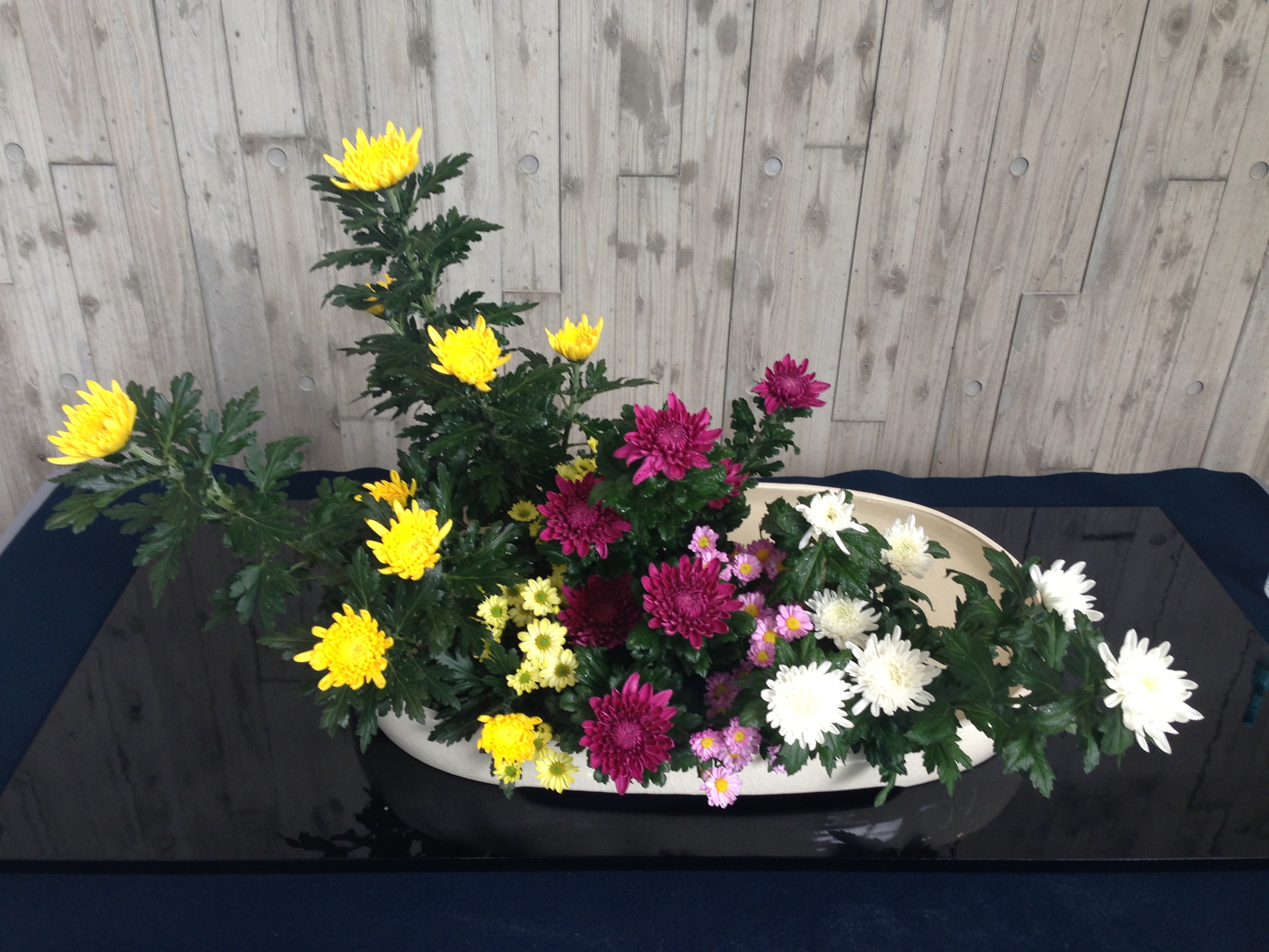 ●小原流伝統の盛花作品は、観音堂へと続くスペースに展示されています。 ![]()