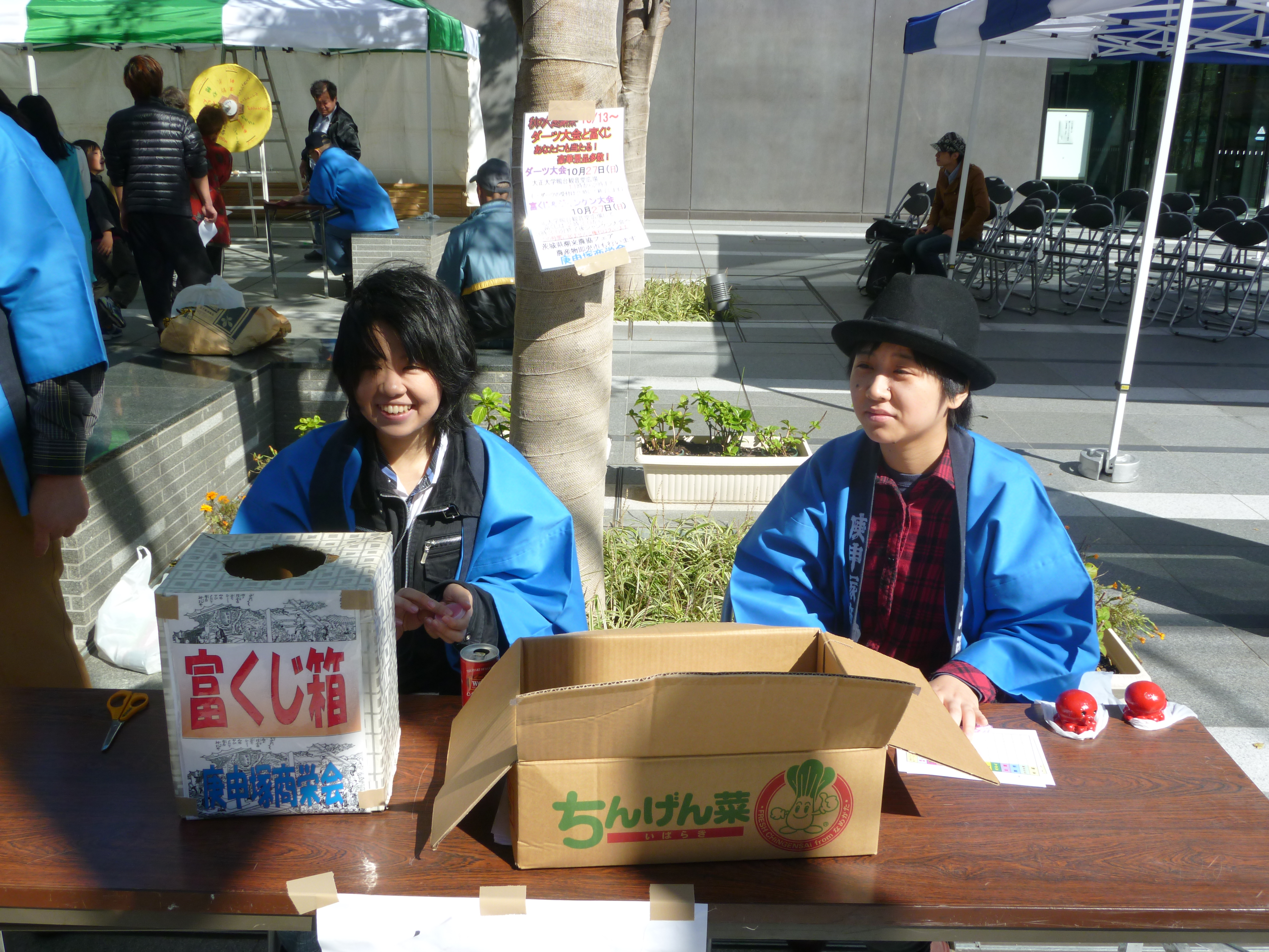 大正大学さざえ堂広場はダーツ大会、富くじ&じゃんけん大会の会場となり、
