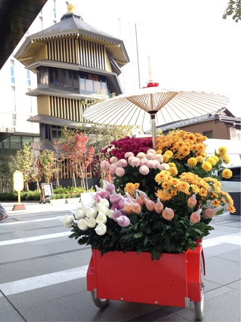大正大学さざえ堂広場では、株式会社T-mapがフラワーワゴンで菊の販売も行っております!