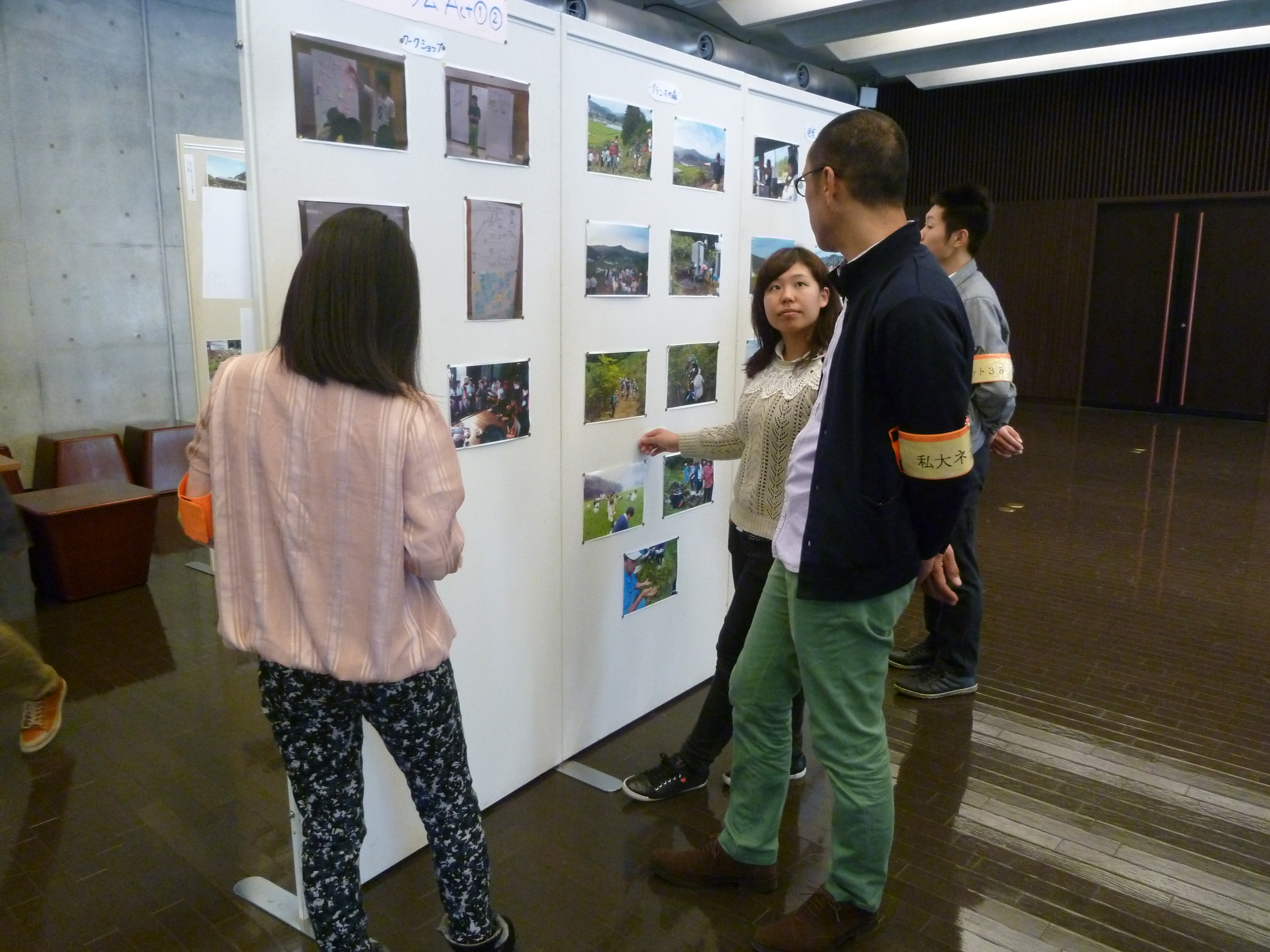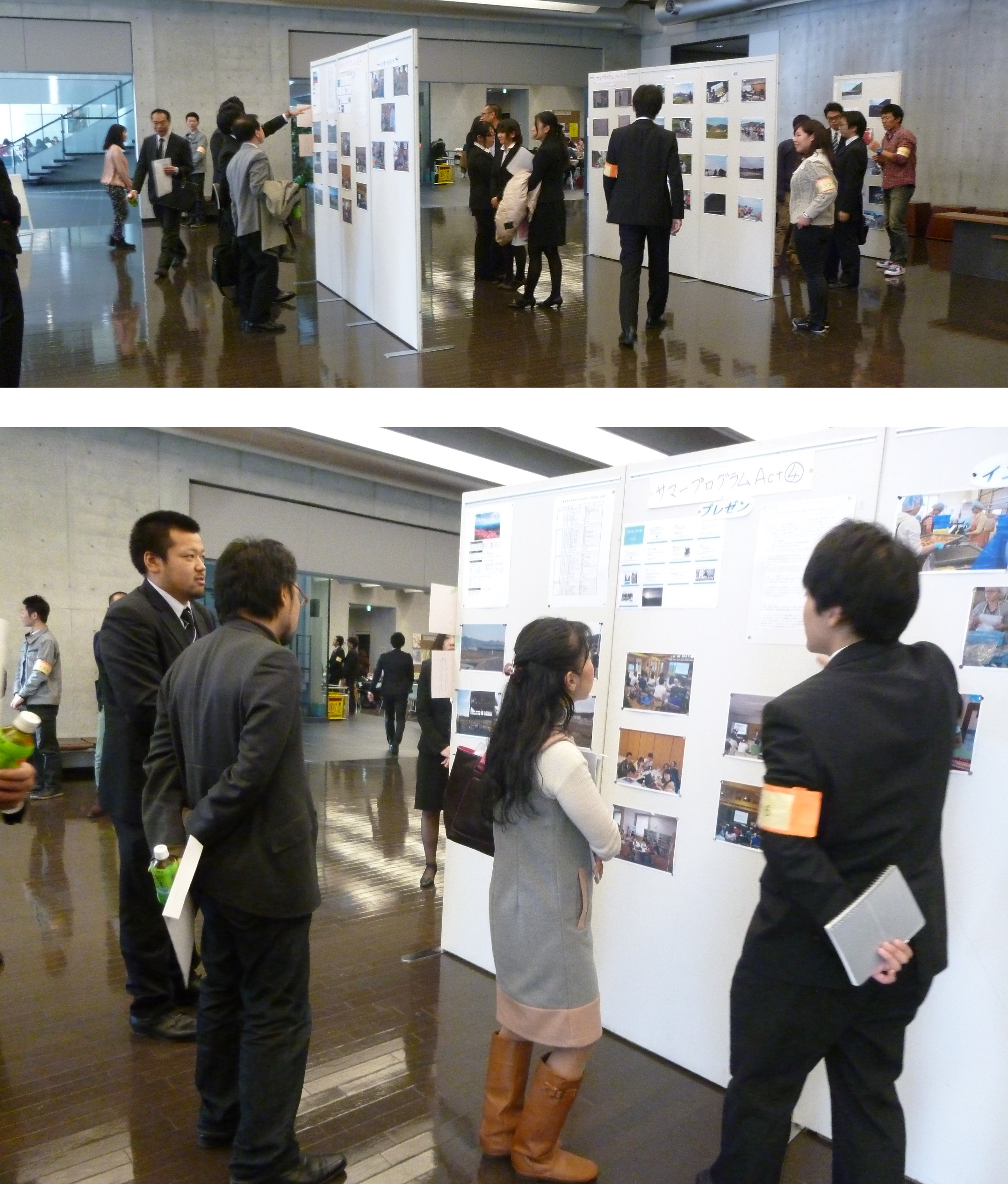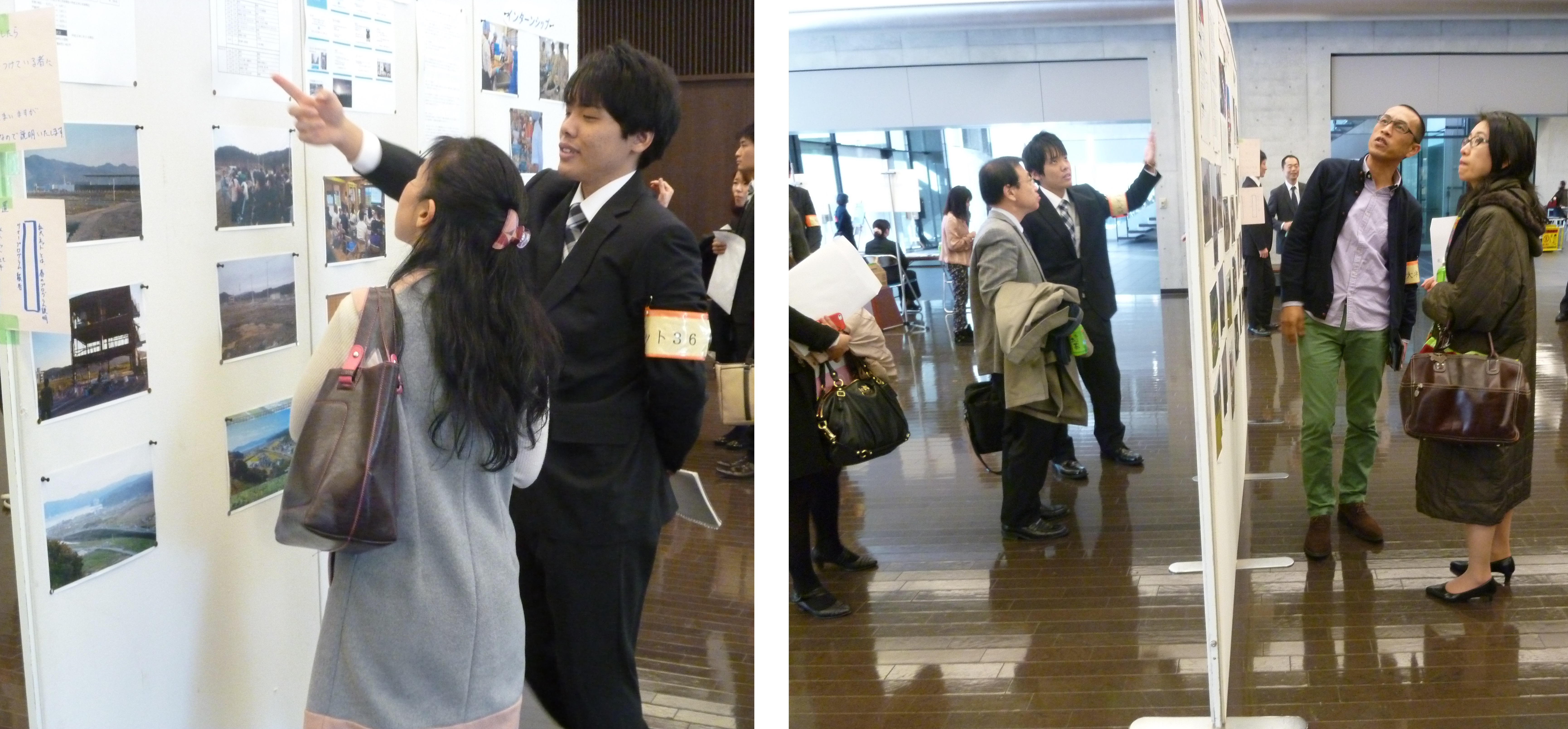 今回のポスターセッションは、写真・文章等を壁やボードに貼り付け、その前に学生が立って
