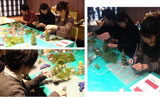 先生の指導を受けながら土台に氷室杉やスターアニスを飾り付けて