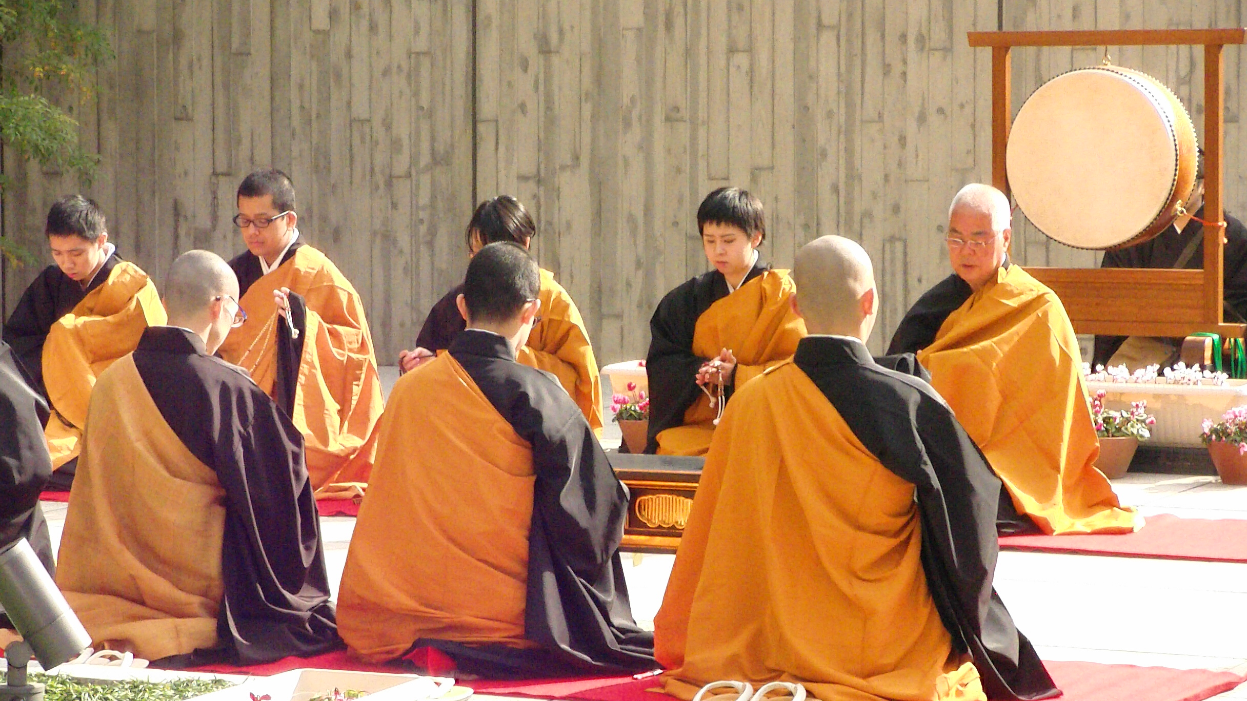 毛氈(もうせん)の緋色に袈裟の色が映えて、視覚的にも引きこまれる法要でした。