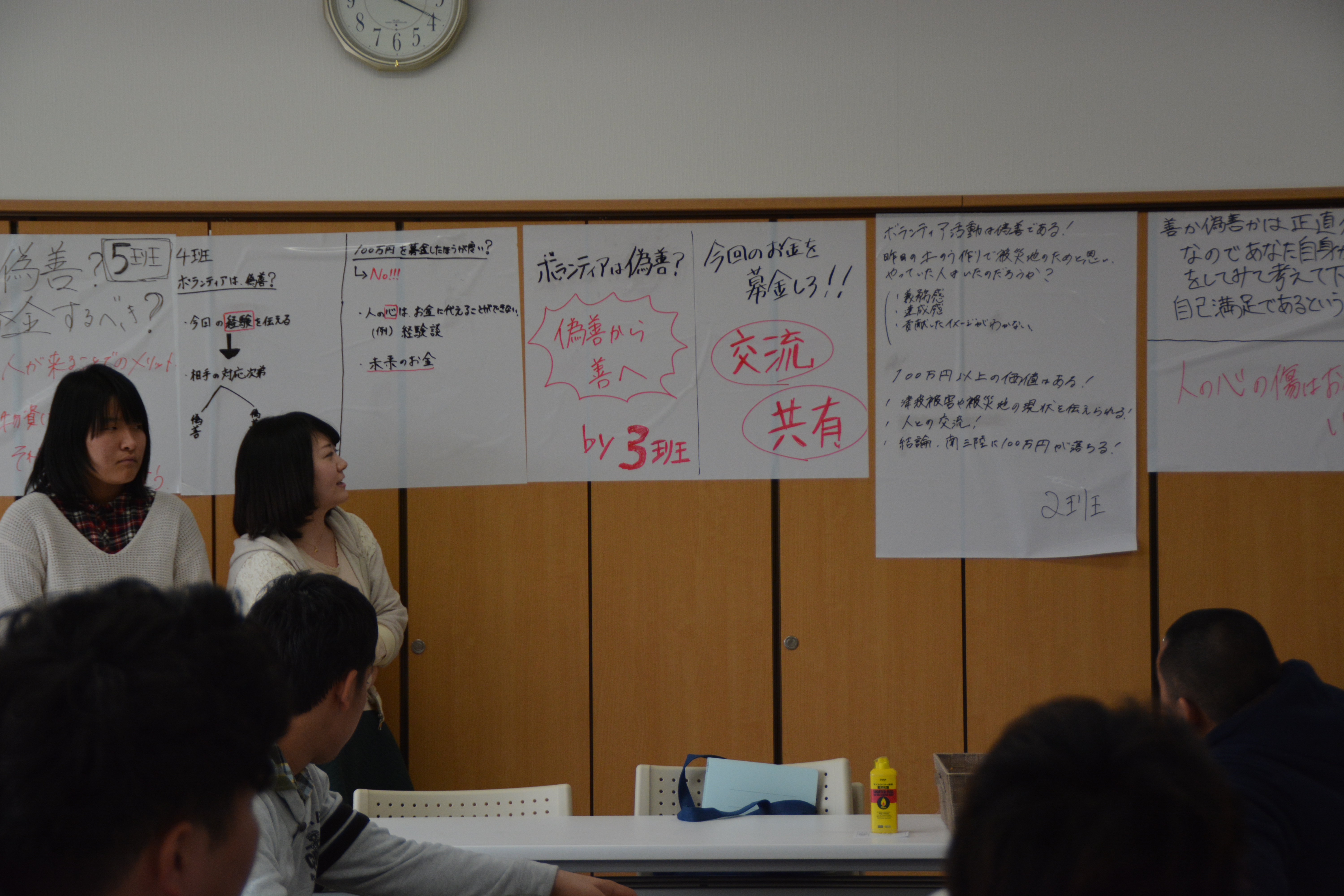 事前に各グループに配られた新聞記事に対しての意見をまとめて、発表をしました。
