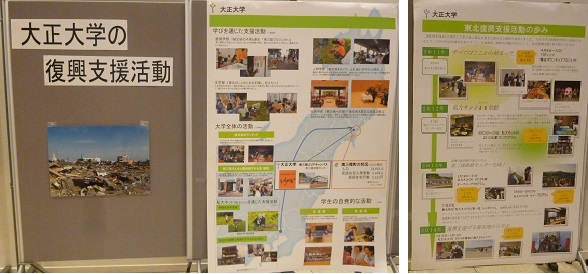 大正大学は、第1部 復興支援活動発表で学生4名がステージにあがり