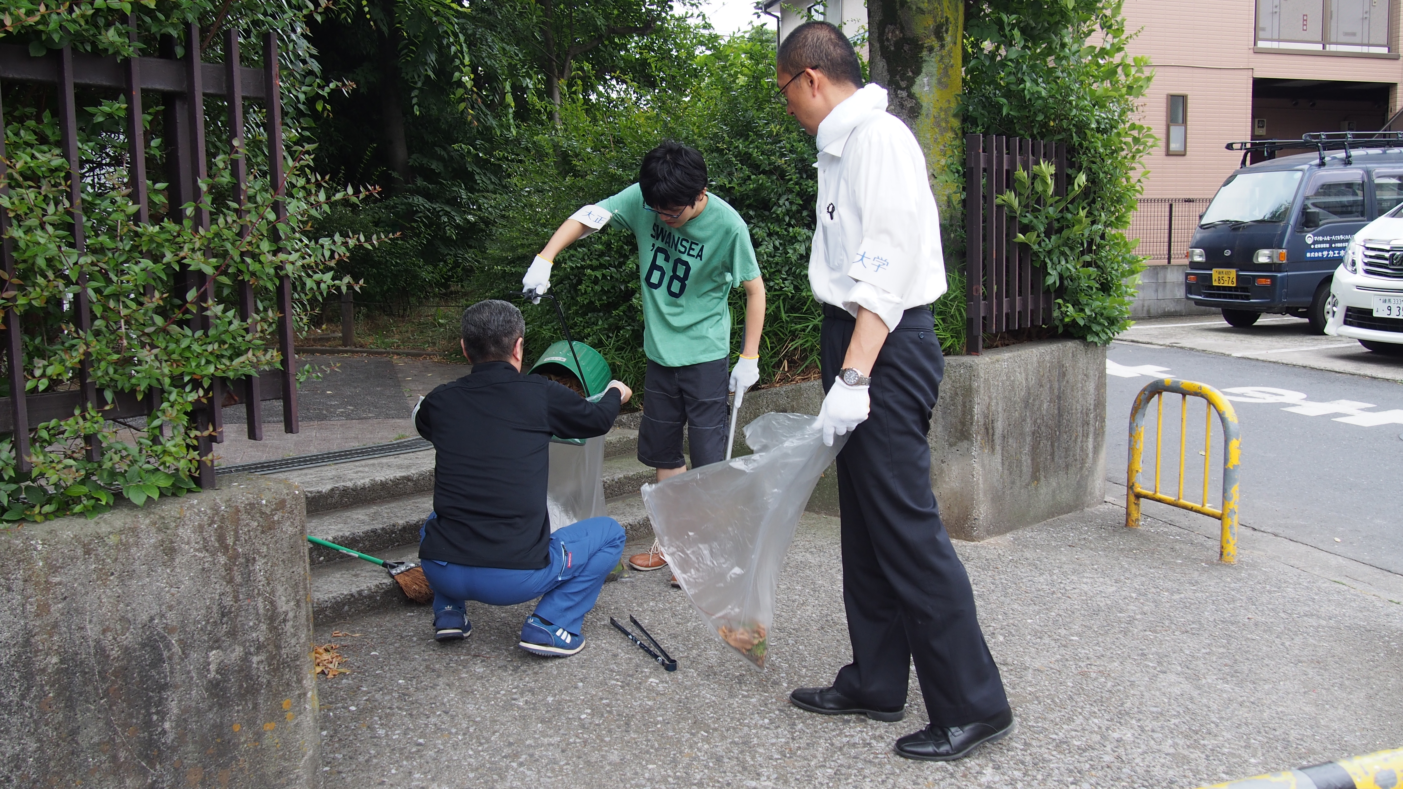 9時からは大学に隣接する西巣鴨睦町会の皆様と一緒に白山通り周辺の歩道の清掃活動を、