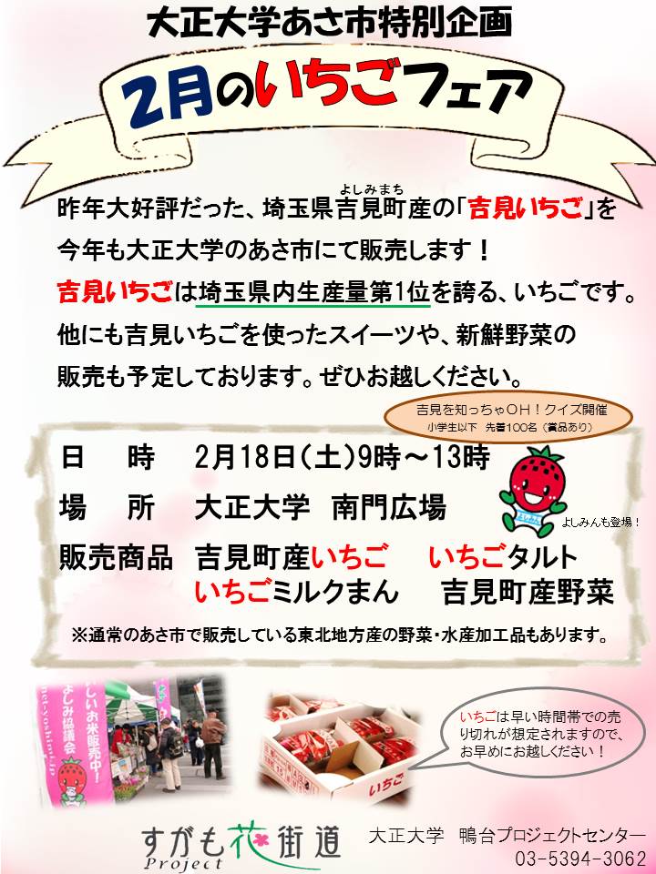 昨年に引き続き、2月の「あさ市」では「特別企画2月のいちごフェア」を開催します。