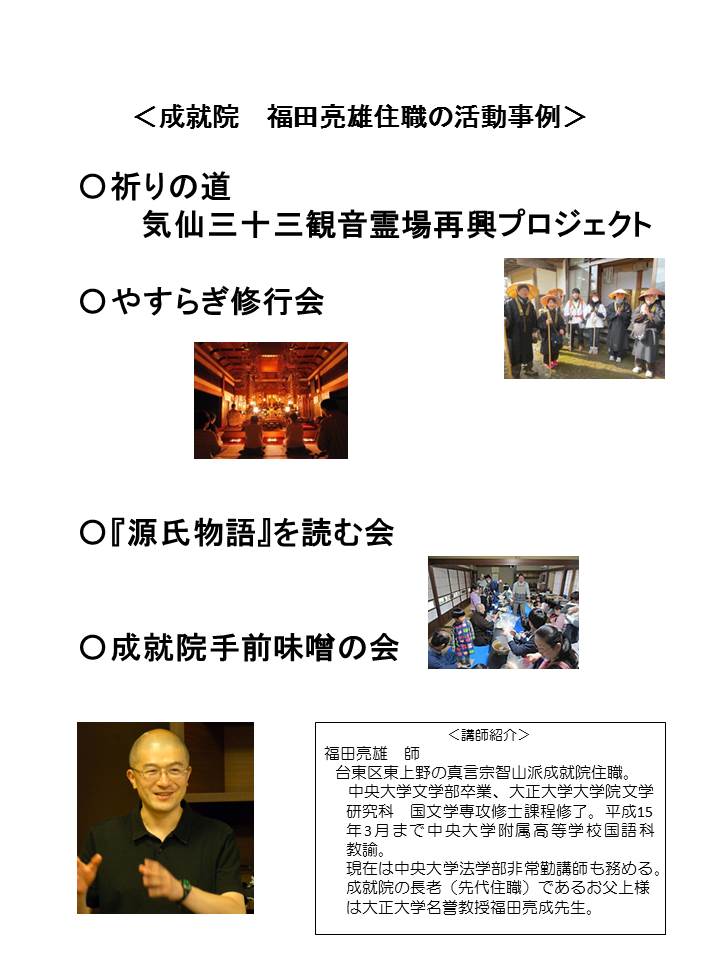 講師 : 真言宗智山派 成就院 住職 福田亮雄 師