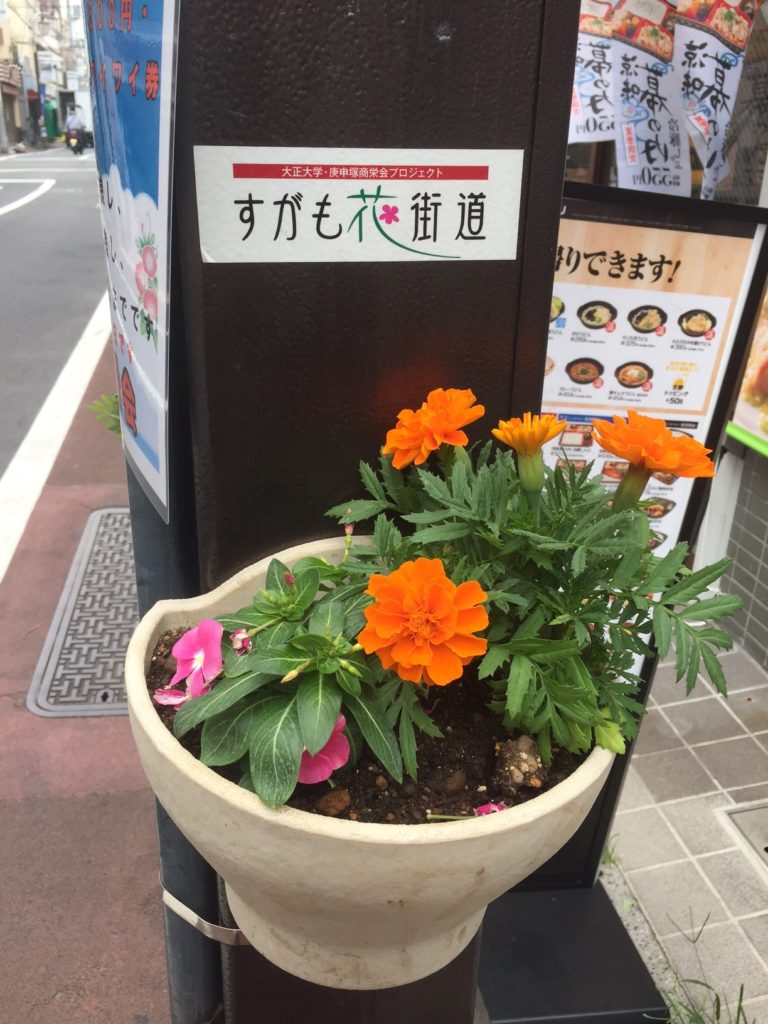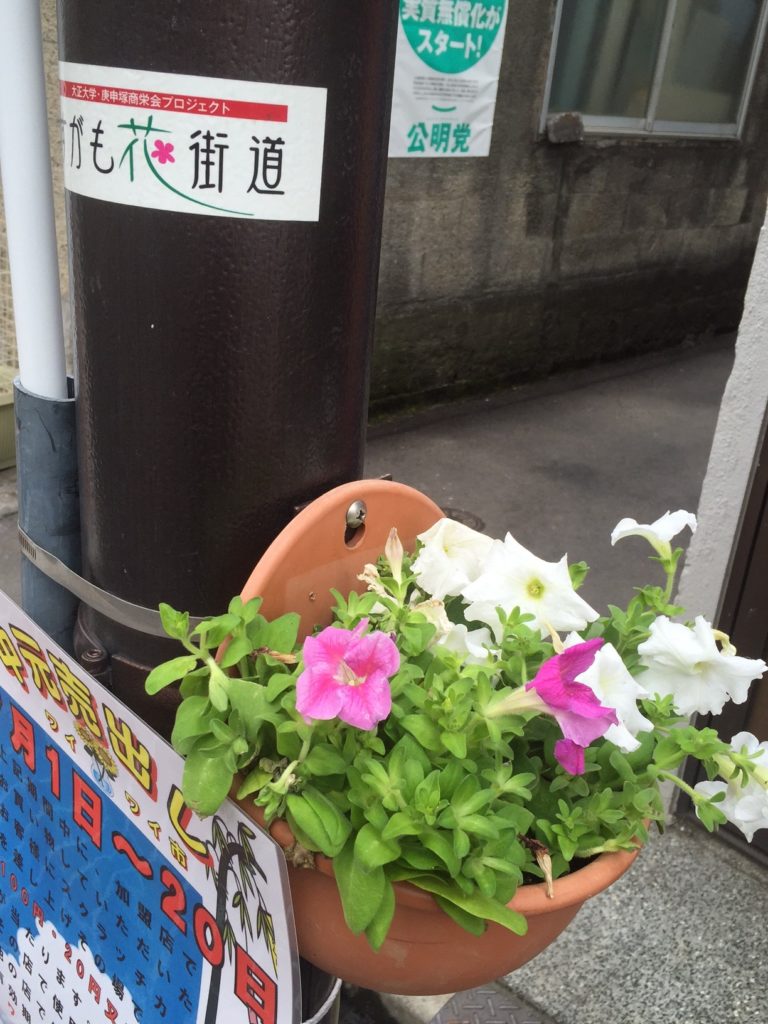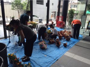 お花の管理(水やり)も、サービスラニングの受講生が、