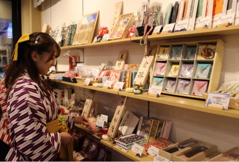 京漬物西利、京菓子井筒八つ橋、佃煮野村、福寿園など京都を代表する老舗の食を中心に、京都ならではの食を取り揃えています。また、歌舞伎座等でして手に入らない歌舞伎商品も扱い、京都発祥の歌舞伎の魅力を伝えていきます。