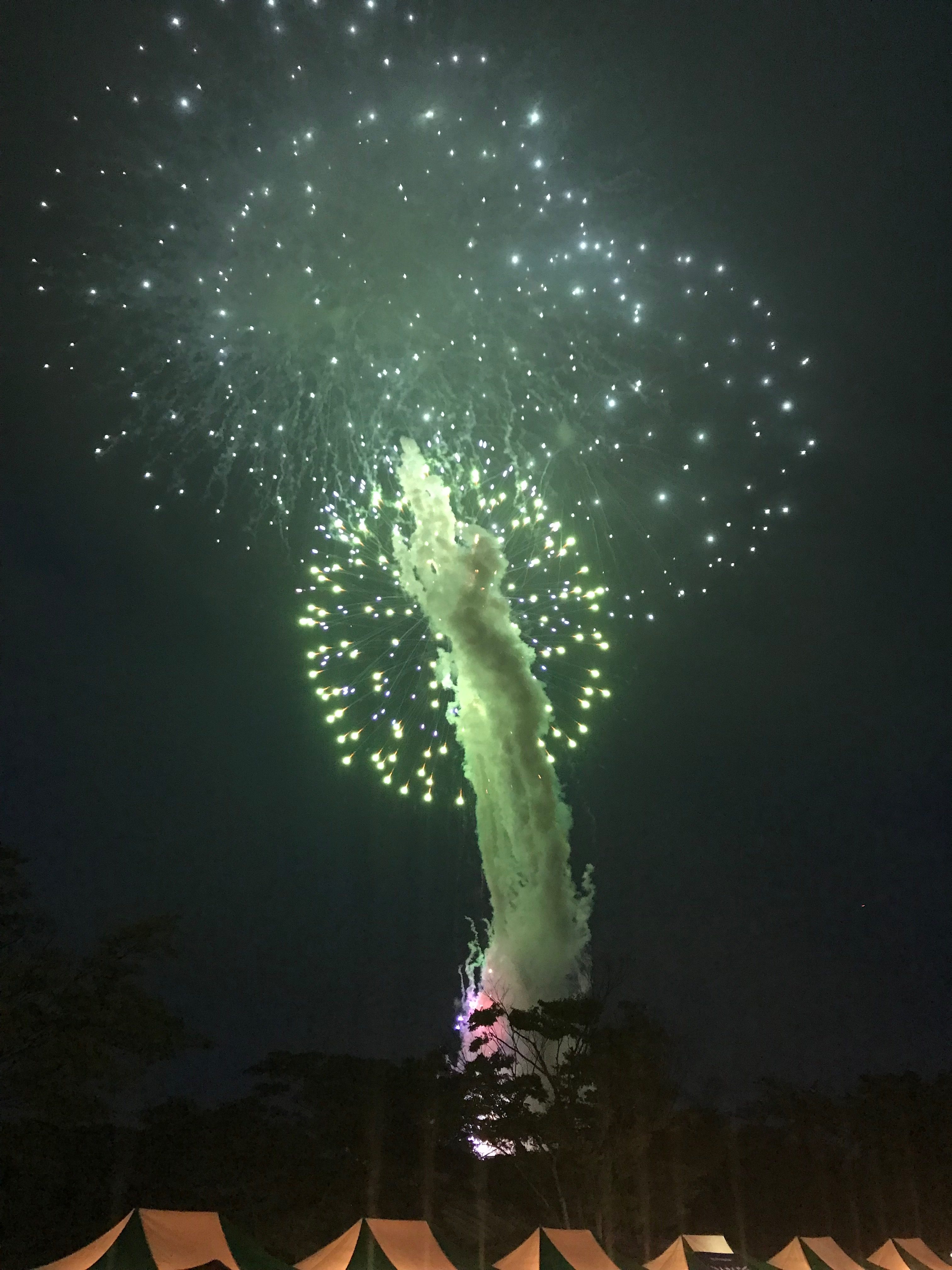 音楽に乗せて公園のすぐ上空へ打ち上げられる「音楽花火」