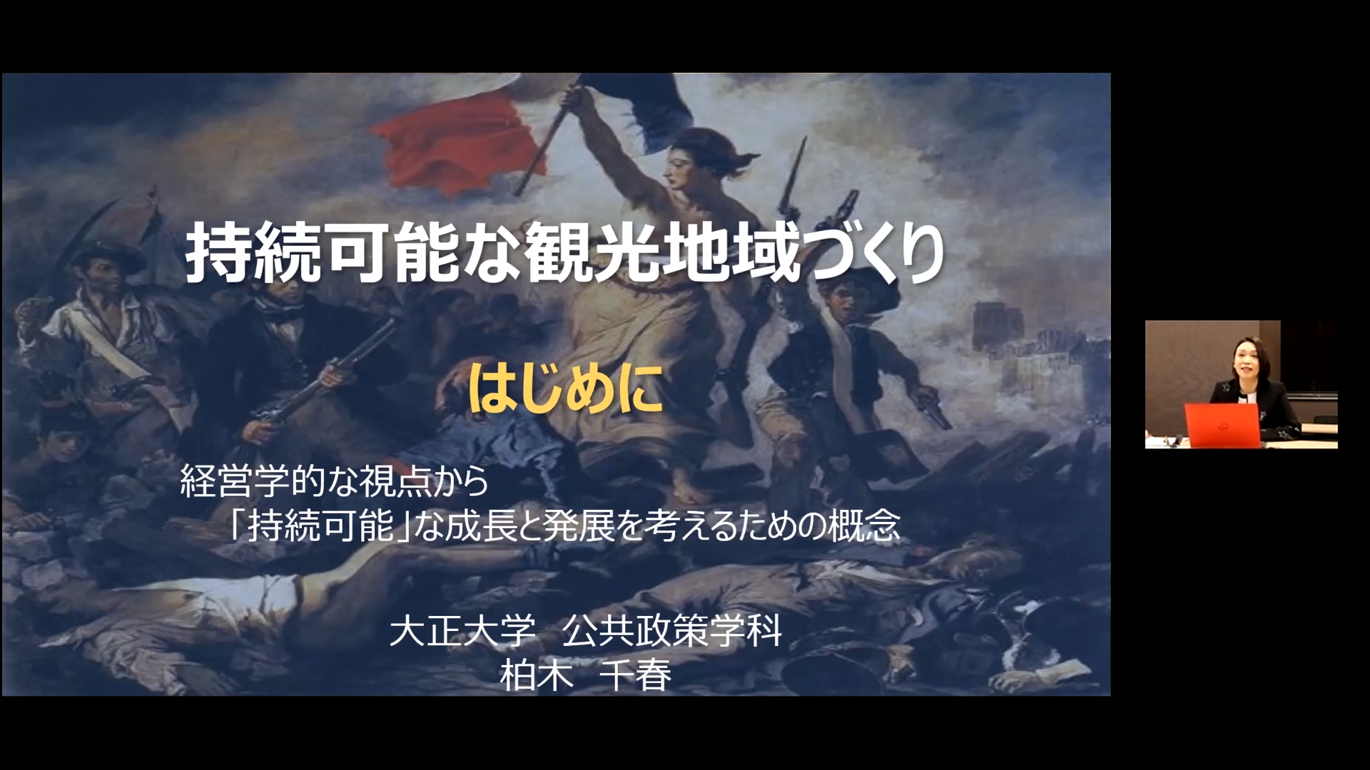 今回は本学社会共生学部公共政策学科の柏木千春教授が講師となり、「持続可能な観光地域づくり」をテーマとしました。