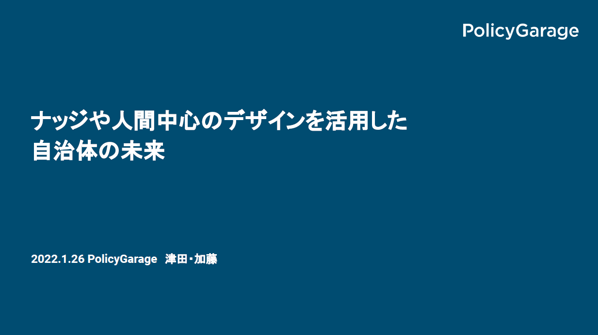 今回はNPO法人PolicyGarageの津田広和氏と加藤優里氏を講師にお招きし、「ナッジや人間中心デザインを活用した自治体の未来」をテーマとしました。