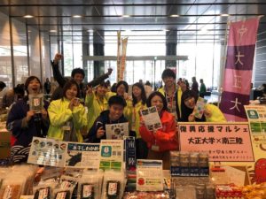 12/13(木)「NECネッツエスアイ 第15回企業マルシェ」の南三陸ブースで、大正大学の学生たちが物産品のPRを実践しました