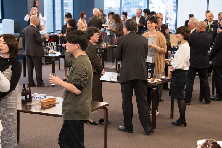 パーティー中盤、同日開催していた鴨台祭について実行委員長よりご案内があり、地域創生学部の学生からは終えたばかりの東京実習の成果報告をしていただきました。