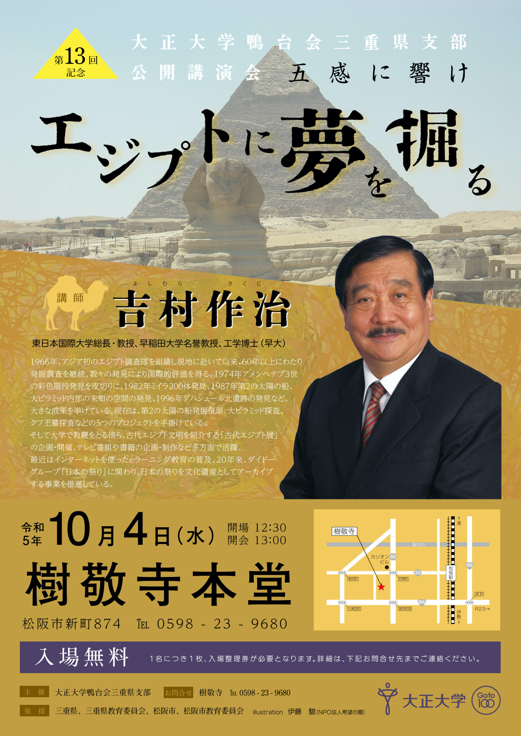 【お知らせ】三重県支部公開講演会 吉村作治氏 講演会のご案内